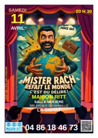 - " Mister Rach refait le monde " le samedi 11 avril 20 h 30 la Ciotat Maison Ritt salle Molière
